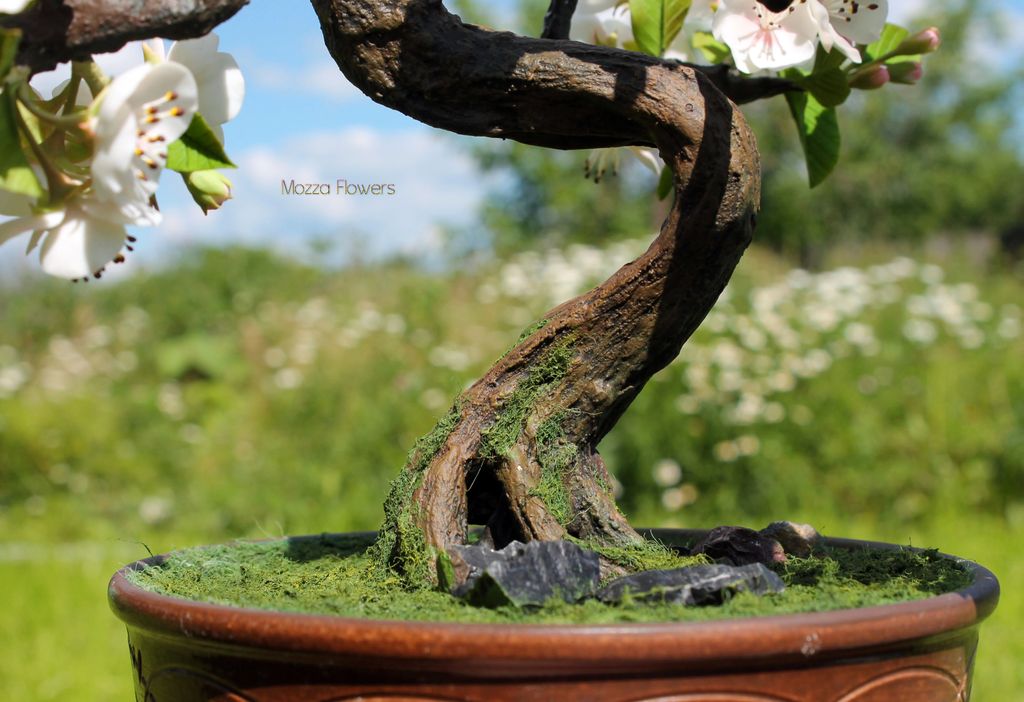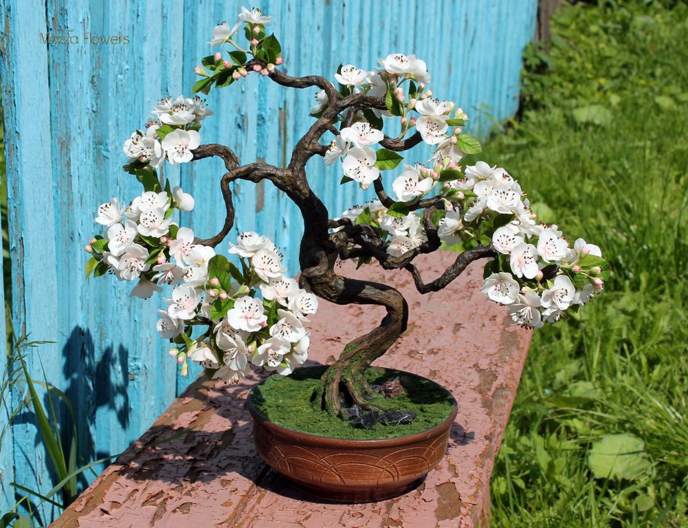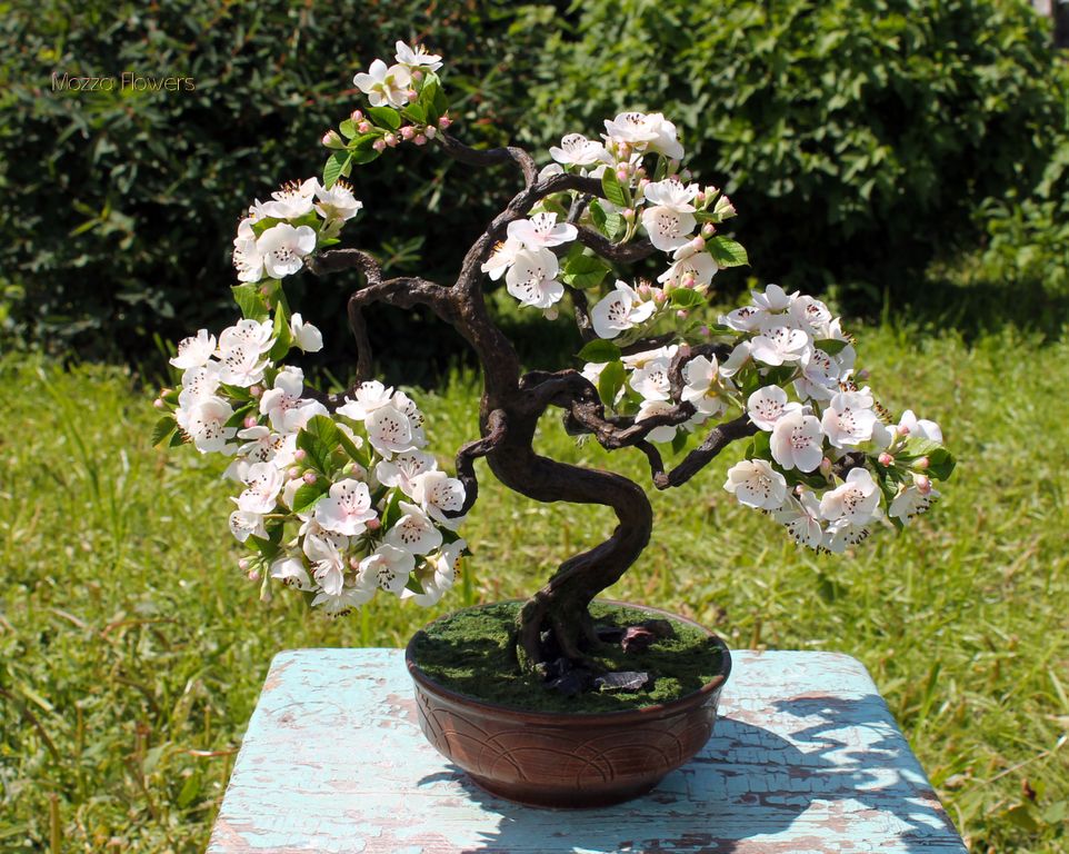 Цветы и листья слеплены вручную из тайской полимерной глины (тайский холодный фарфор), тонированы масляными красками.