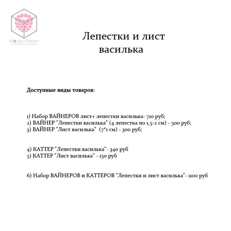 1) Набор ВАЙНЕРОВ лист+ лепестки василька- 710 руб;