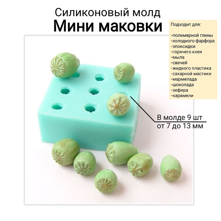 Молд позволяет передать мельчайшие детали настоящих мини маковок со всех сторон, так как выполнялся с настоящих растений.