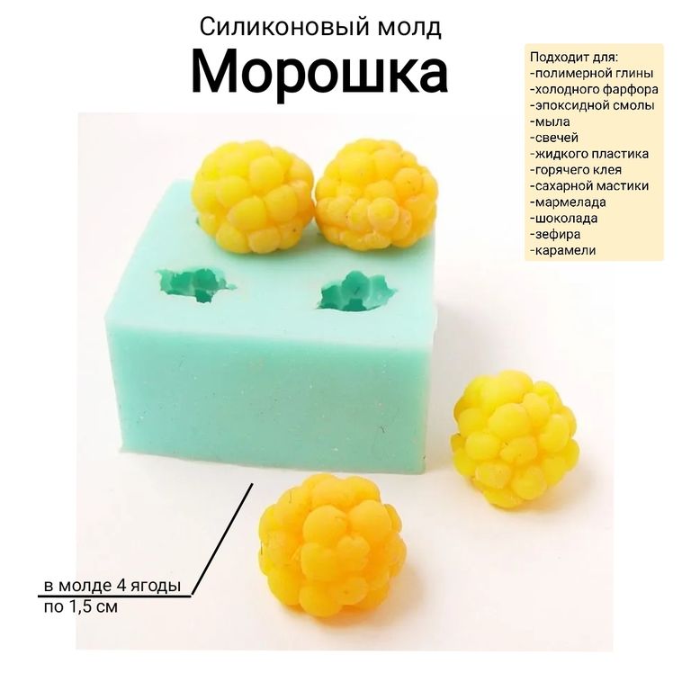 Молд позволяет передать мельчайшие детали настоящих ягод морошки со всех сторон, так как выполнялся с настоящих ягод.