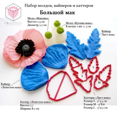 4) Каттеры "Лист мака" (3 шт) - размеры S,M,L