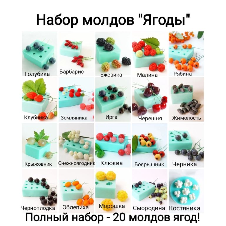 В наборе 20 молдов ягод :