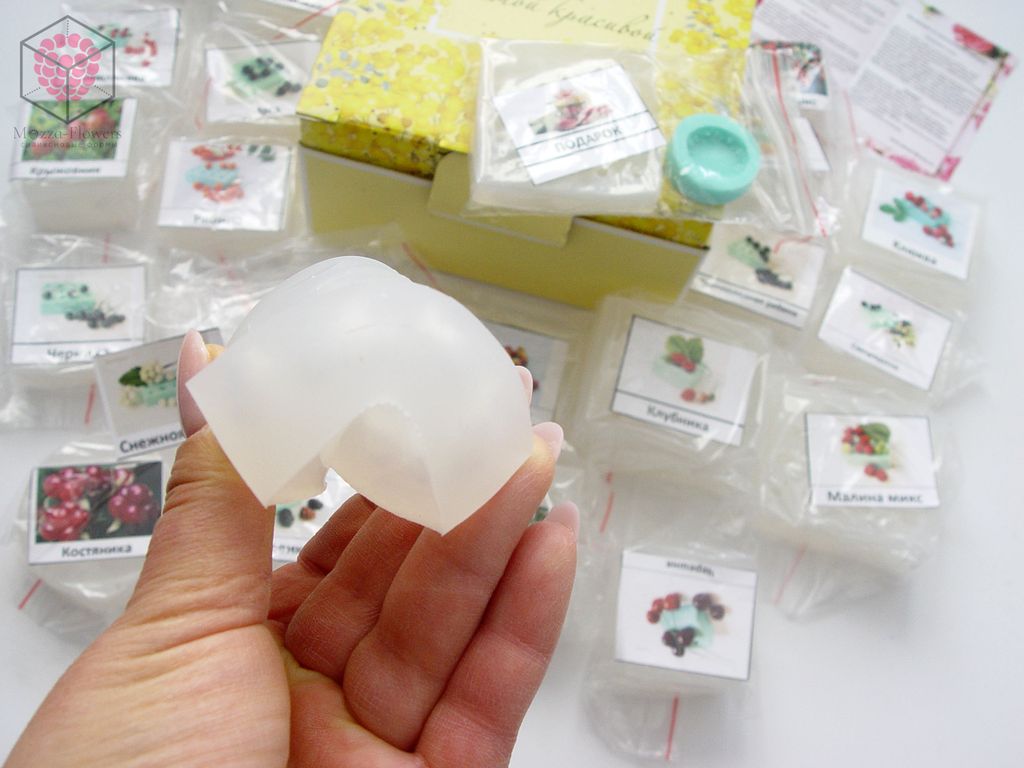 - 1 молд клубника ( 9 ягод 0,9-2,5 см)
