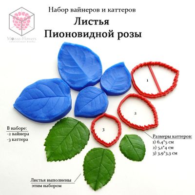 2) Каттер "Лист пионовидной розы" - 3 шт