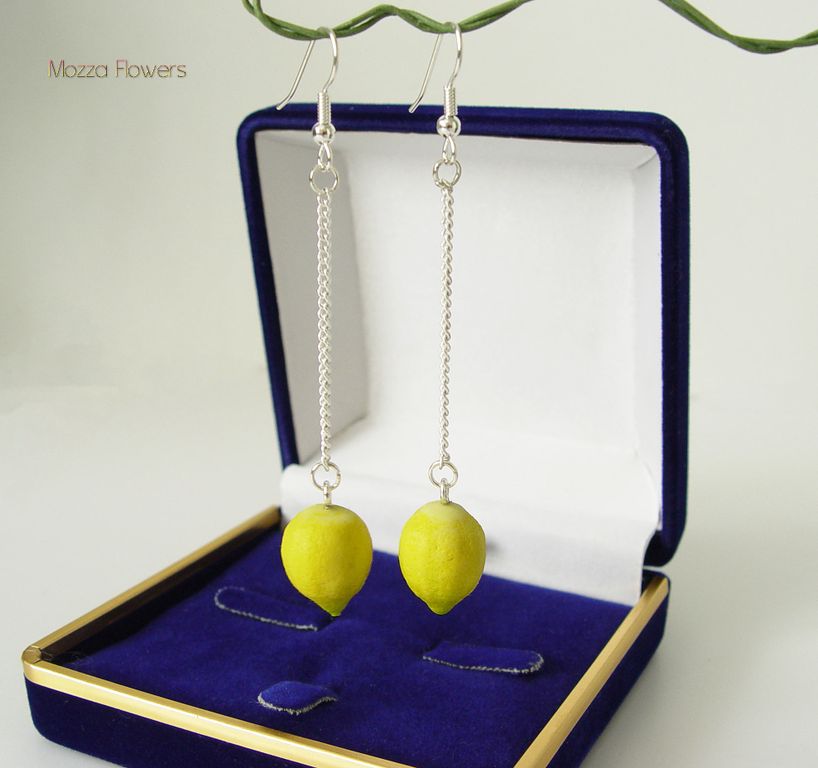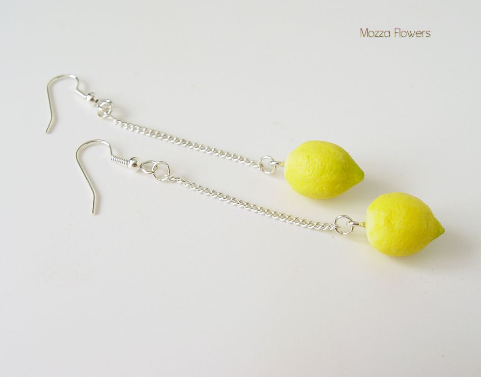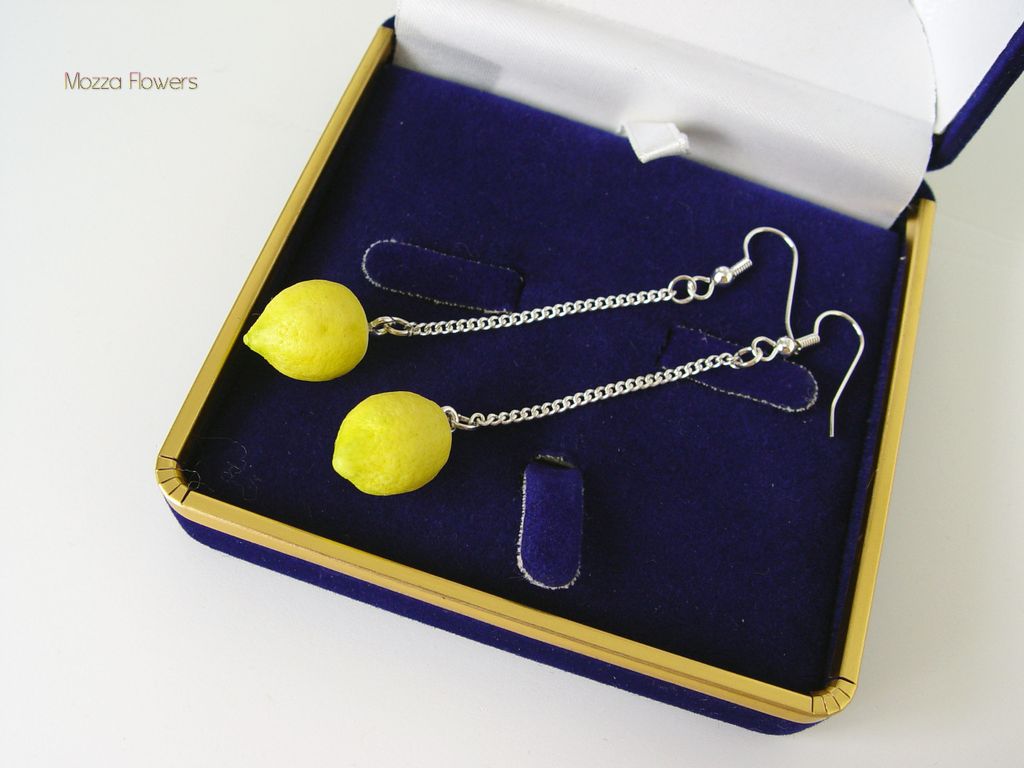 Серьги-цепочки "Лимончики" слеплены из полимерной глины вручную.
