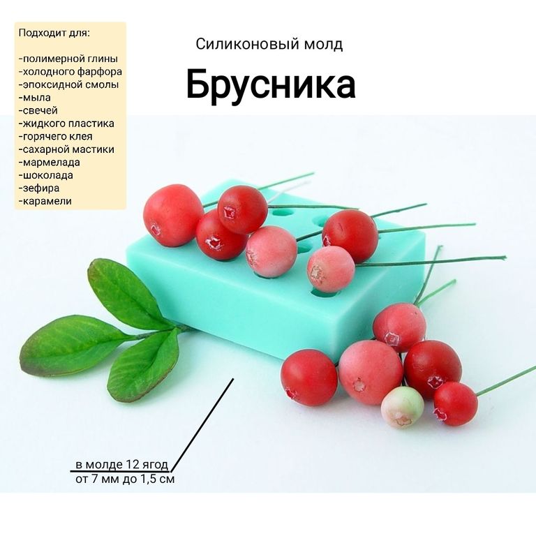 Молд позволяет передать мельчайшие детали настоящих ягод клюквы со всех сторон, так как выполнялся с настоящих ягод.